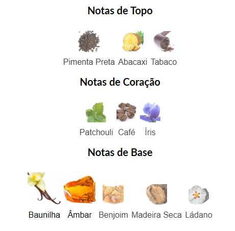 A base é profunda e duradoura, com notas amadeiradas, âmbar e baunilha que criam um rastro envolvente e intenso na pele. O resultado é uma assinatura forte, moderna e sofisticada, perfeita para quem aprecia fragrâncias de presença e longa duração.