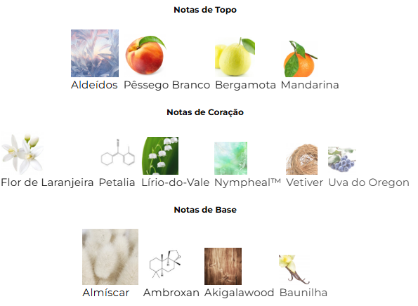 A base é confortável e envolvente, com Almíscar e Baunilha criando um rastro suave, elegante e duradouro na pele. O resultado é uma fragrância floral frutada moderna, delicada e versátil, ideal para o uso diário ou ocasiões especiais.
